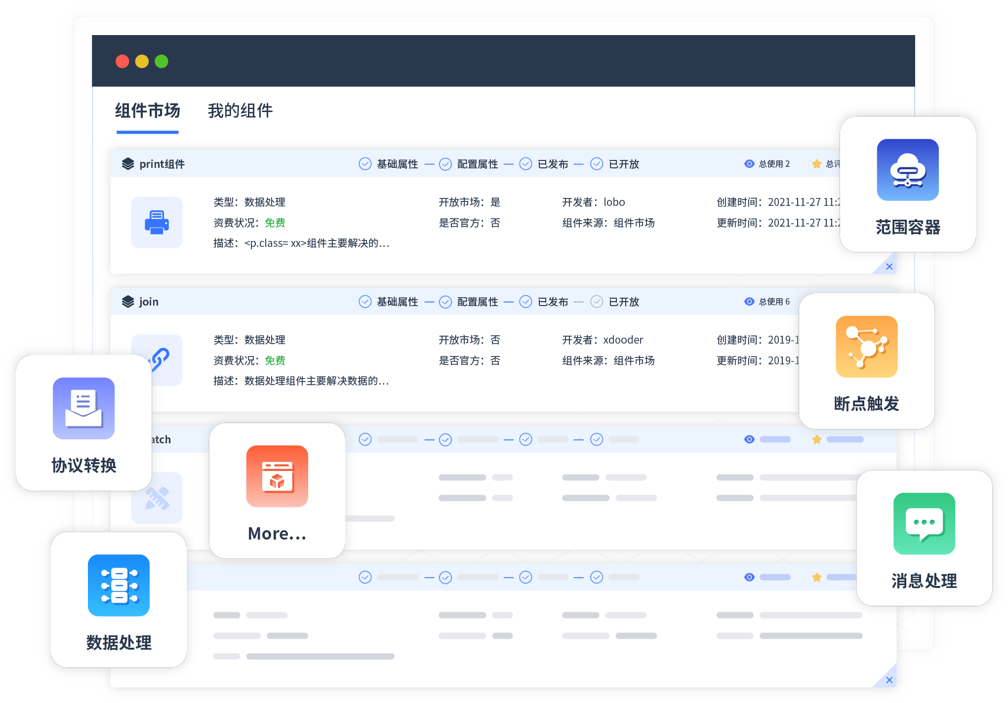 针对集成场景 ,NO钱包提供组件市场 ,例如协议转换 、消息处理 、文件操作等 。除平台提供的组件外 ,客户可以自定义所需组件 。